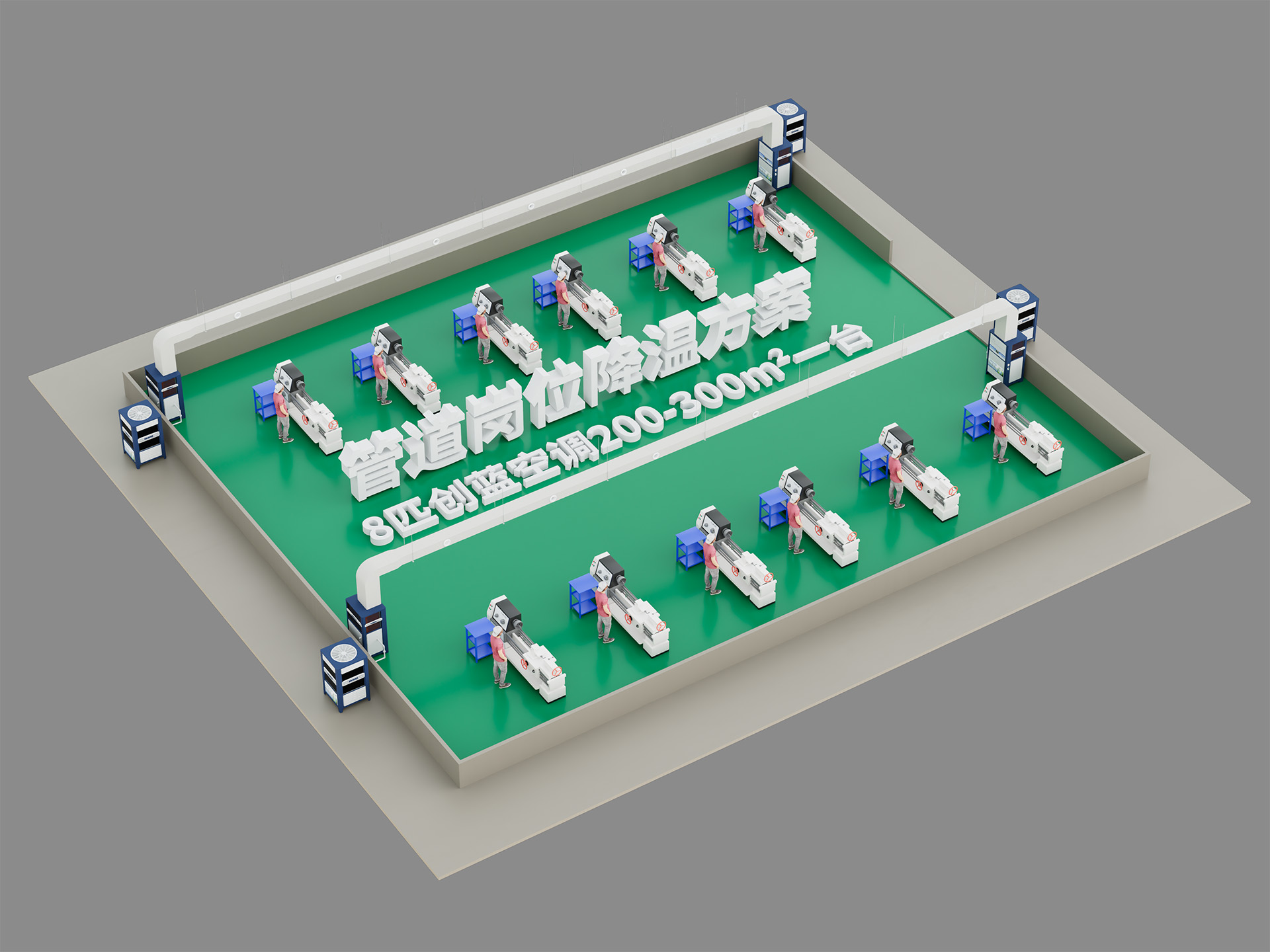 5.可以根据需求在不同的环境使用不同的方案。可以使用传统空调的直吹式在密封的情况下整体降温。使用环保空调的岗位送风式在指定工作地点降温。使用中央空调的中央送风式更加美观。做到客户需要什么我们就怎么出方案。